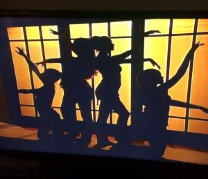 I can only describe the intro for this workout as… awkward. We fade up on a cluster of women, in silhouette with their arms out at odd angles to represent the many-armed goddess.