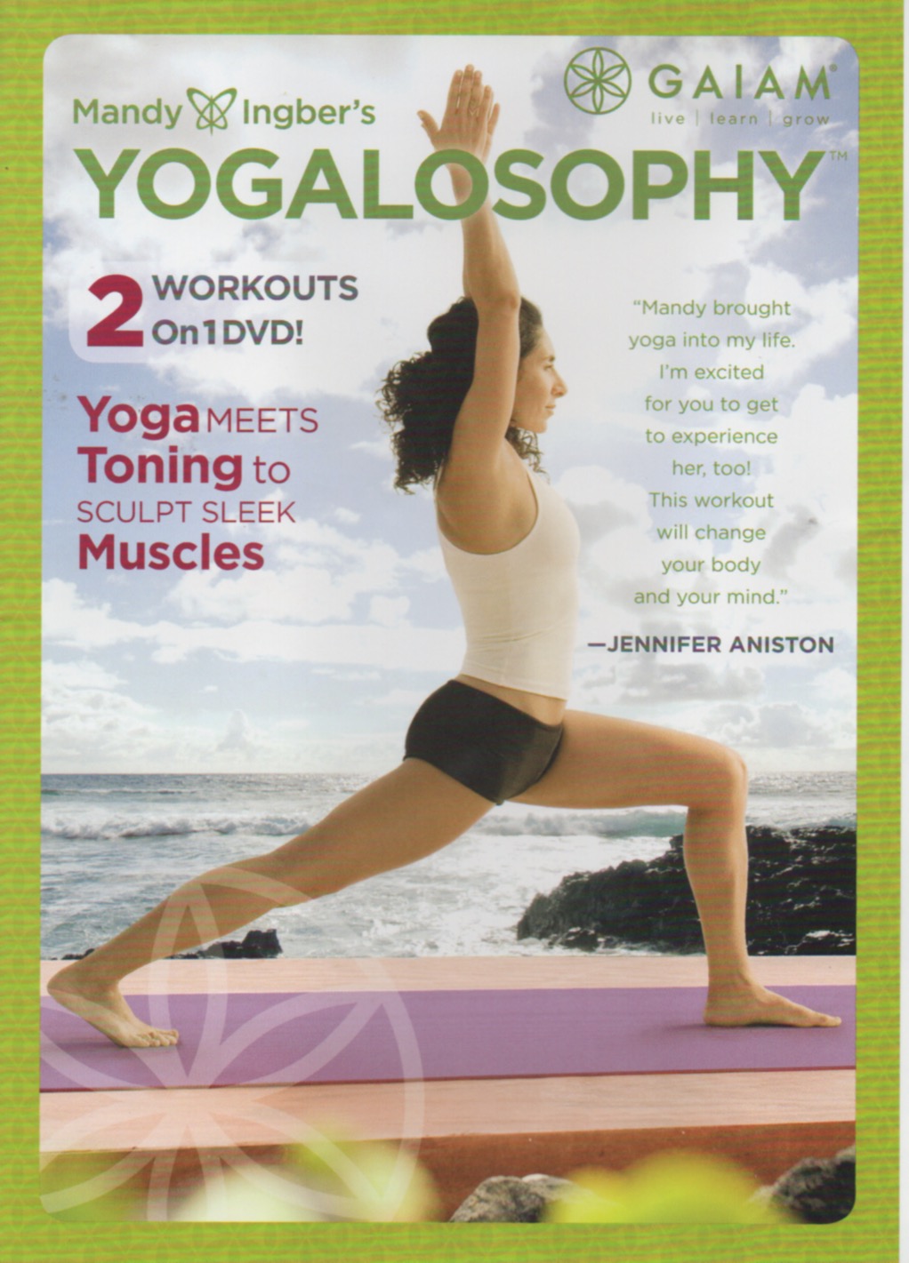Jennifer Aniston actually recorded an intro for this DVD, that’s how enthused she is for you. She’s on top of a mountain in Griffith Park, with Downtown LA in the background. (No sign of our local hero, mountain lion P-22.) The clip is only 24 seconds long. She says that the instructor, Mandy Ingber, is a dear friend of hers, and it might really be true. Why else would you hike up to the top of a mountain with a camera crew for a half-minute blurb? Jennifer doesn’t even mention Brad. Or maybe she did, and they cut that whole part out.