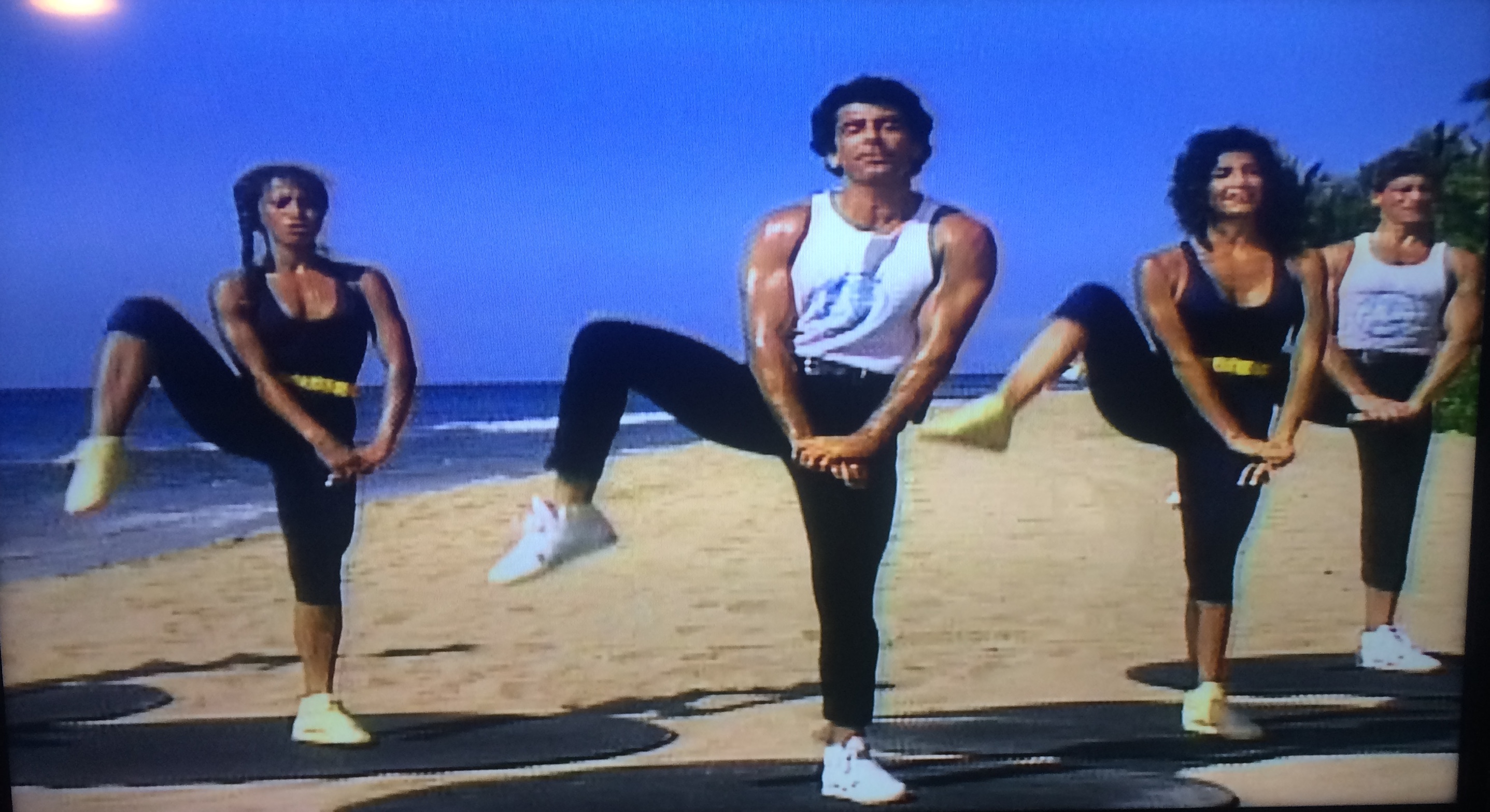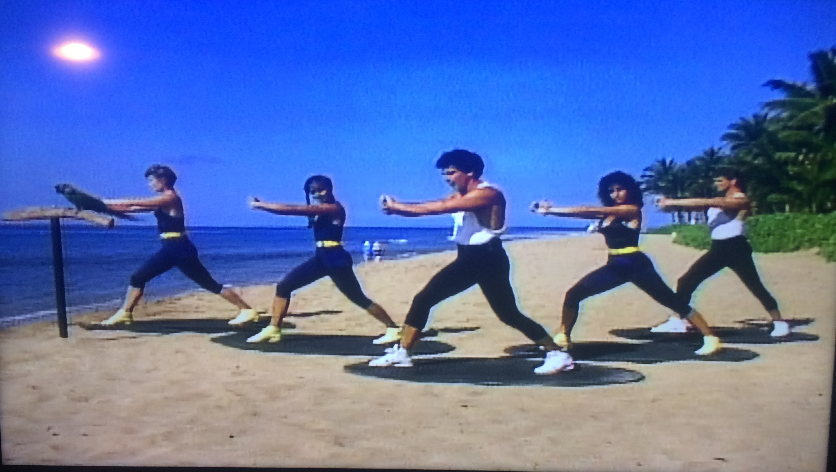 Journey with me now back to 1987 Hawaii, land of beach fitness. Where your leotard was incomplete without a contrasting belt: