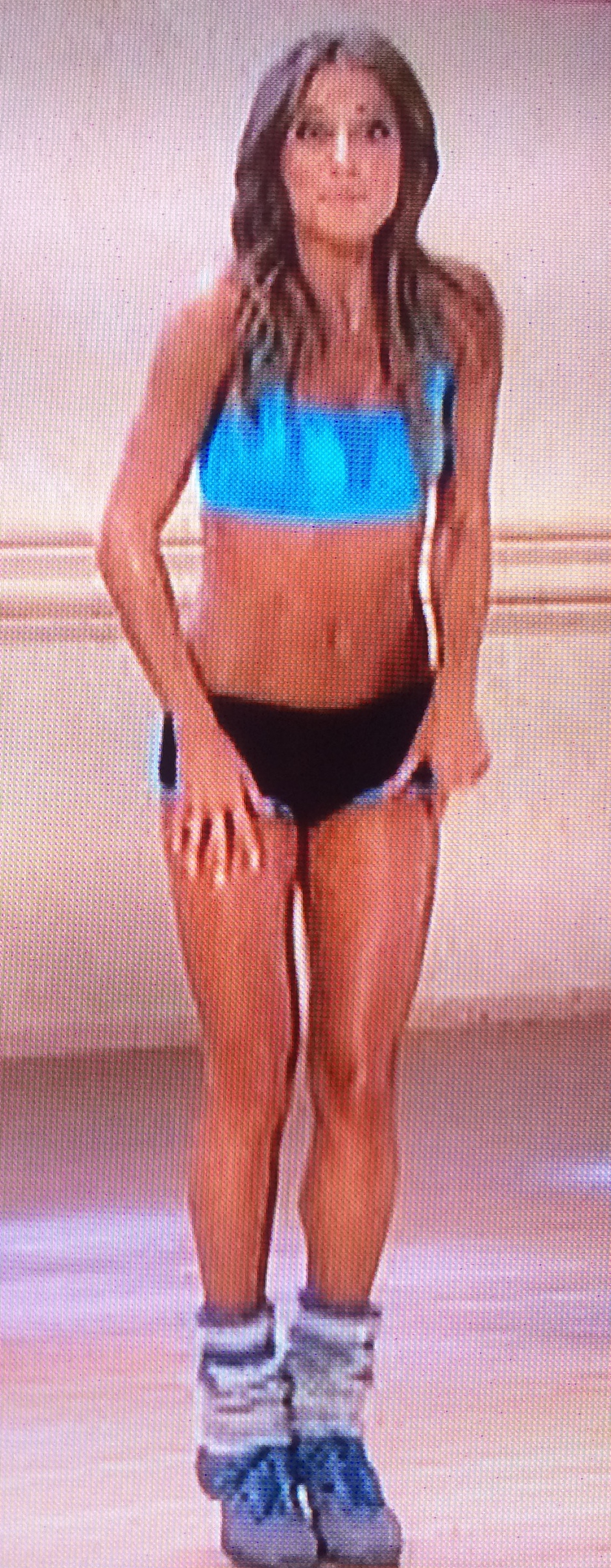 Jive Abs is led by Edyta, whose costumer apparently left her wardrobe on the truck: