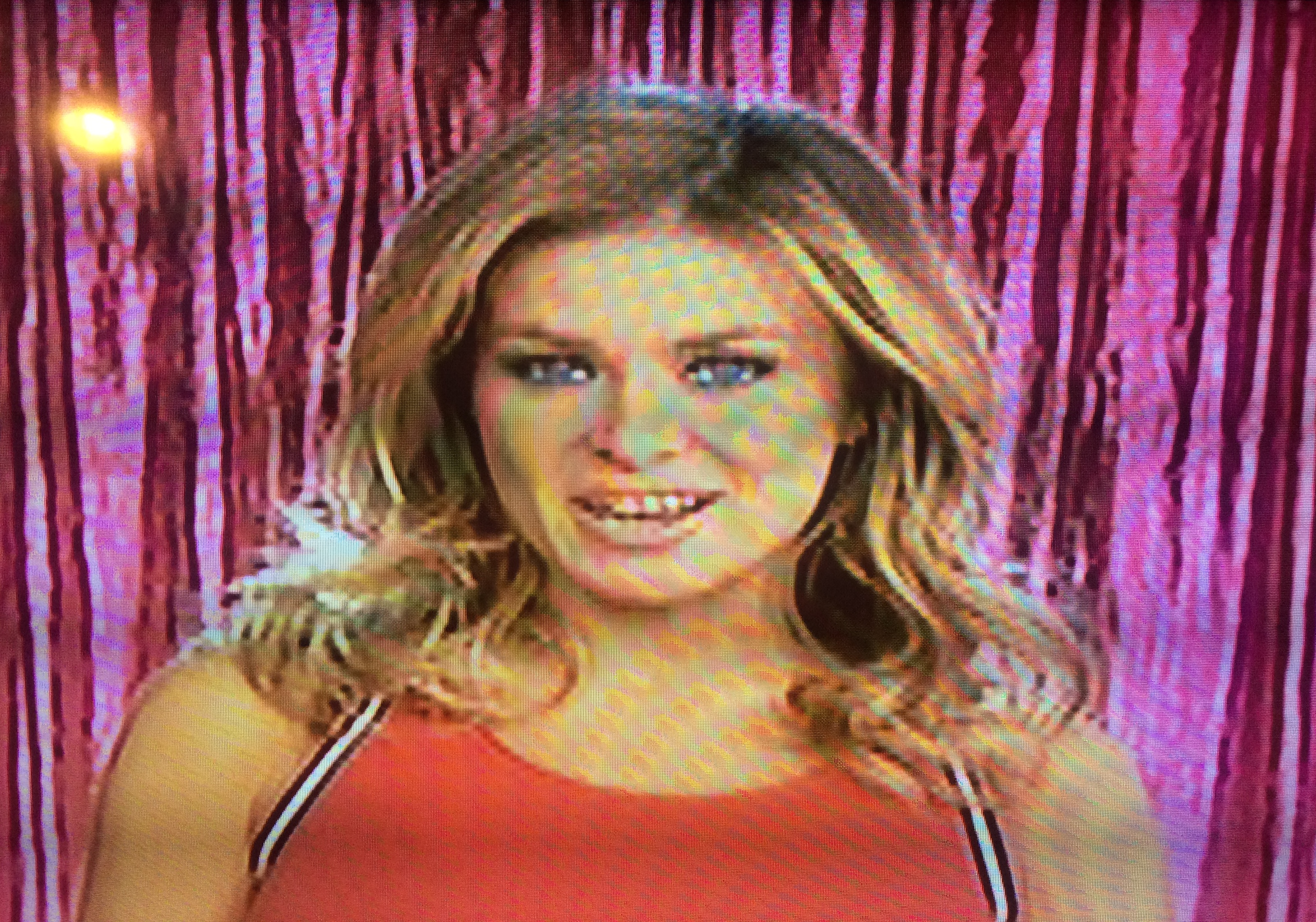 Carmen Electra, the sexy, fit expert on sexy fitness, makes her introduction in front of some pink curtains that, if they were not intended to resemble the folds of a vagina, it is certainly one hell of a coincidence: