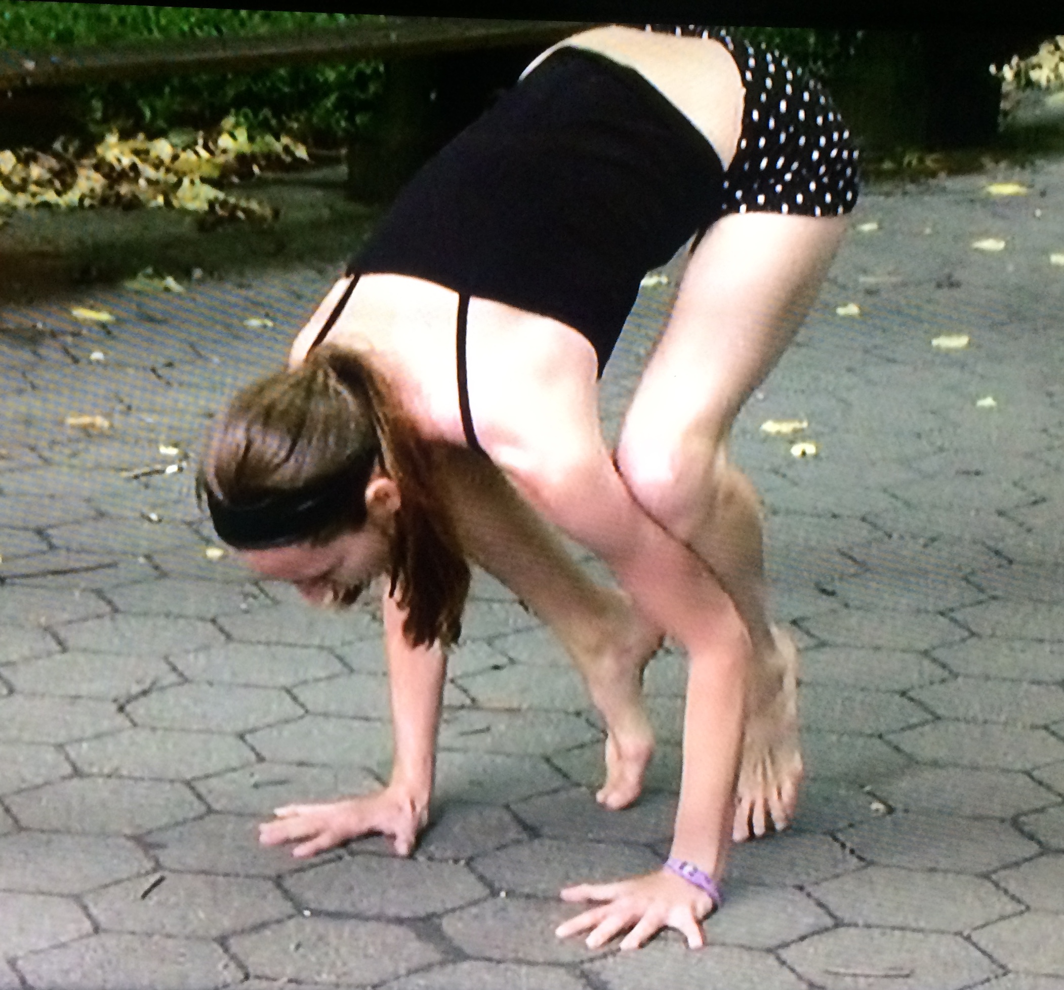 Super! We’ve got four routines filmed en plein air. Tara no longer sees fit to give instructions, but merely demonstrates her prowess, oblivious to the Great Unwashed.