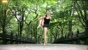 Next, quoth the DVD case, “Tara takes it to the streets of New York, testing your talents with what only can be described as Yoga Art.”