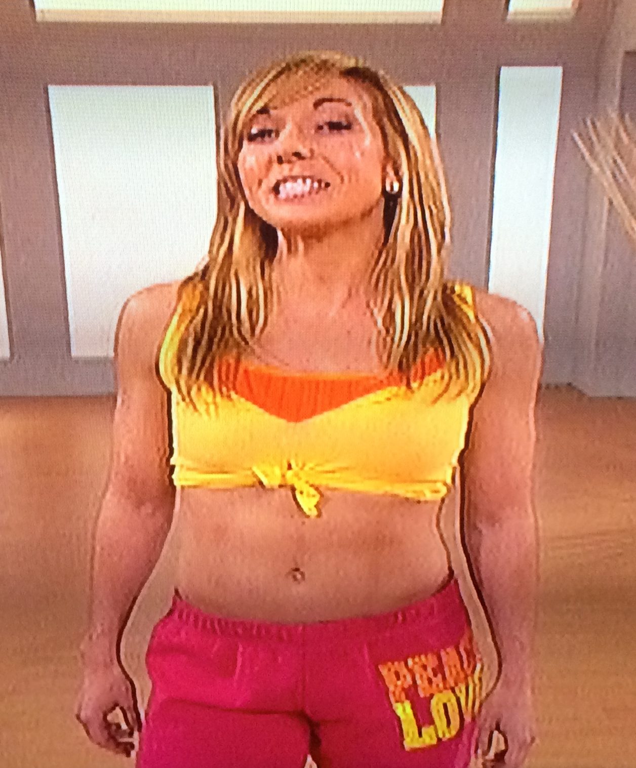 Naturally, we begin with Hip Hop Basics. Our host is the perky Kristin Jacobs, an overgrown cheerleader with PINK stamped on her butt: