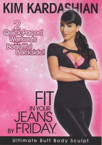 How exciting to find another DVD from Kim Kardashian’s Fit In Your Jeans By Friday series. I previously reviewed Amazing Abs Body Sculpt, which longtime readers will remember I got at the 99 Cent Store, in the same aisle where they sell roach poison.