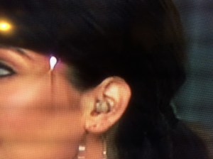 In a closeup, I notice Kim is wearing an in-ear prompter: