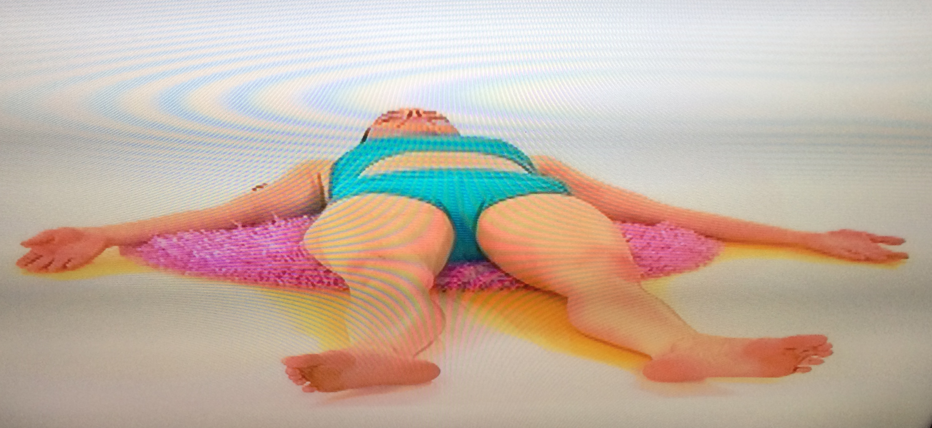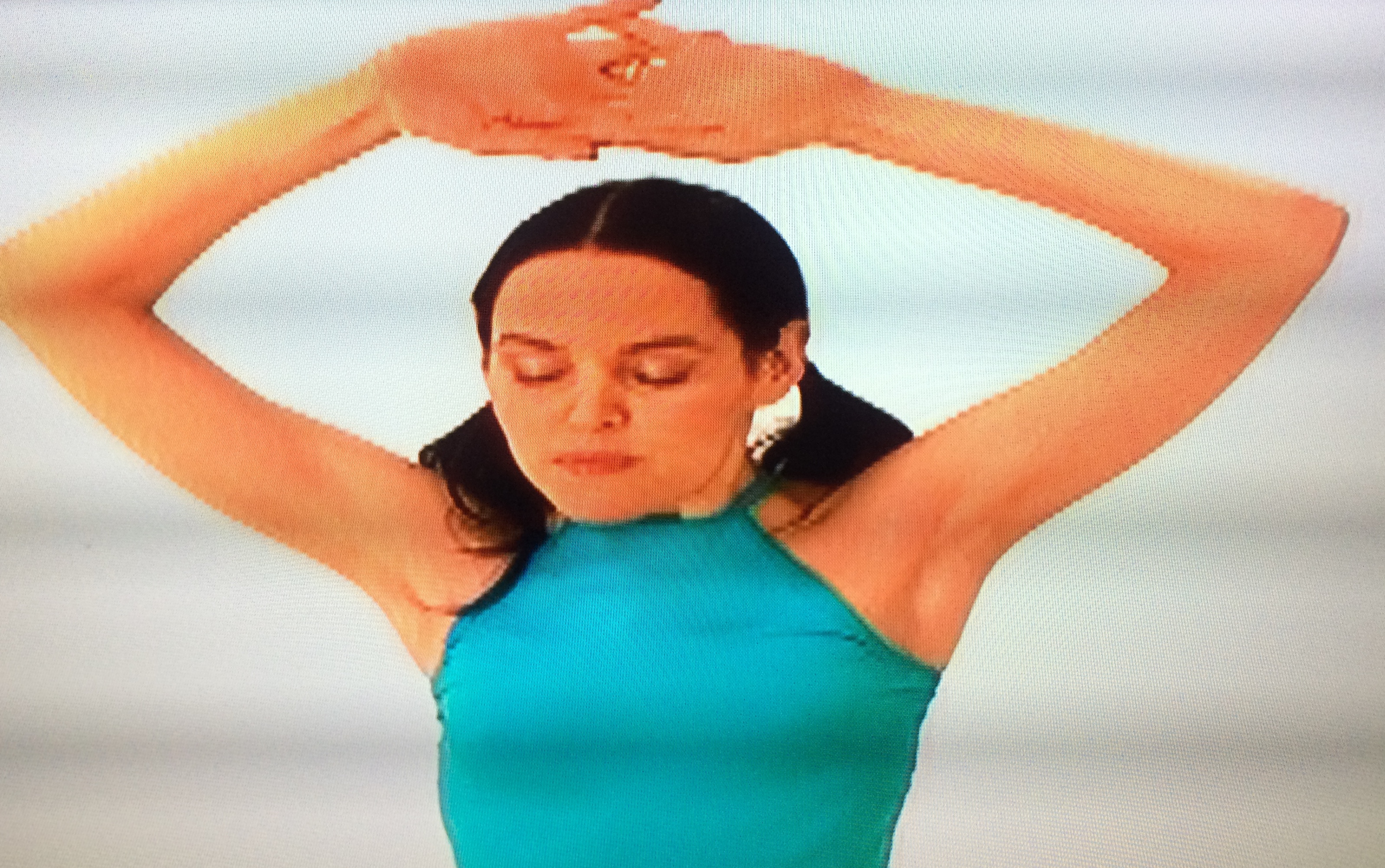 How does this actually open our hips? I’m feeling misled by the very title of this DVD.  Shhh… it’s time to roll your head around. It “prevents wrinkles,” asserts the voice. You know, the only person I know who doesn’t have age-appropriate wrinkles is someone who never smiles. How’s that for a yoga koan?