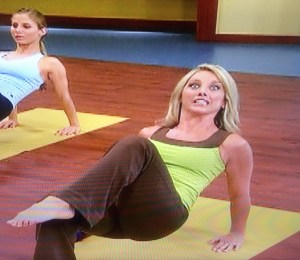 Now it’s time for some Core Conditioning. The camera pulls back from Denise, and after waiting patiently for her cue, she screams, “Let’s begin our ab makeover!”