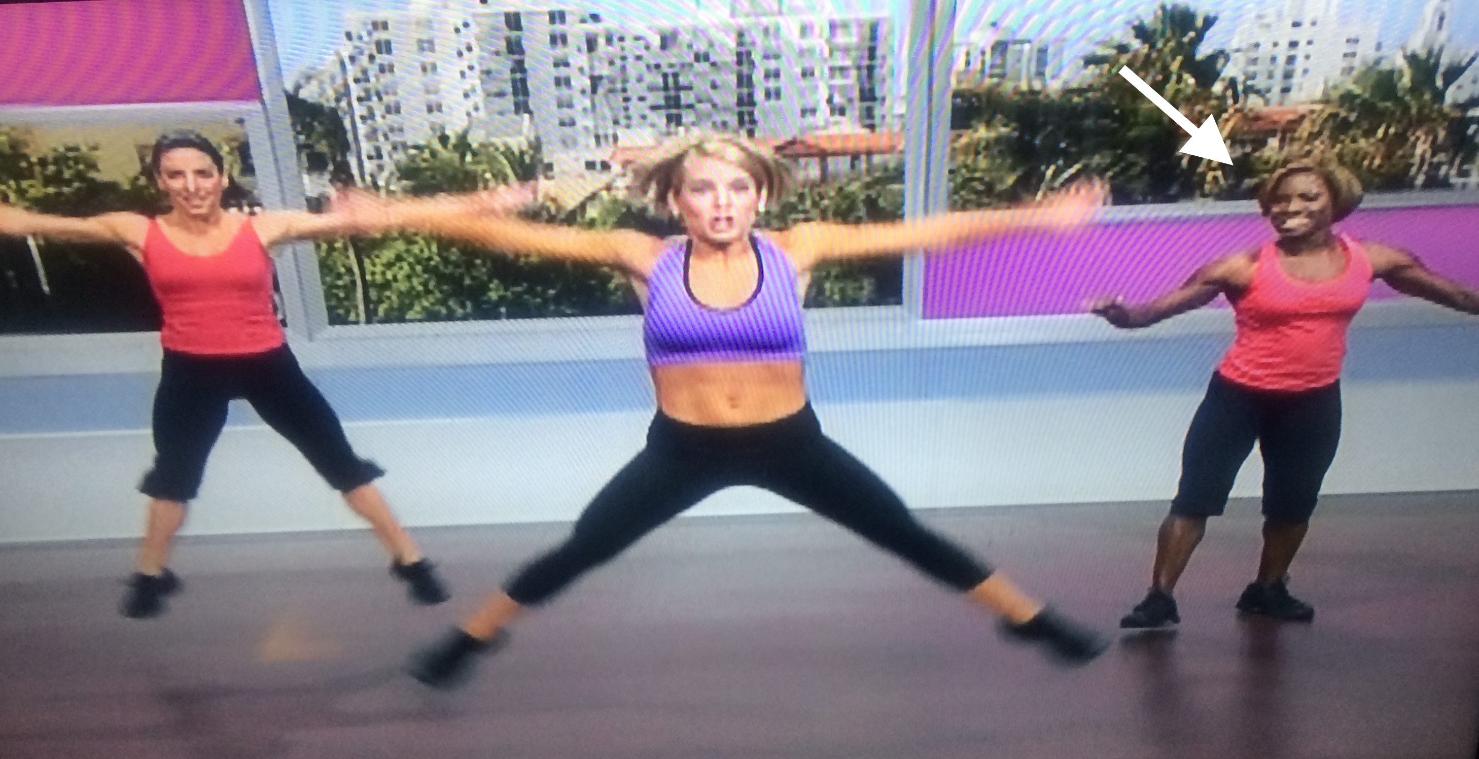Now we’re supposed to jump like we’re auditioning for 42nd Street. The lady showing the beginner modification just gives her a look like, I’m not doing that.