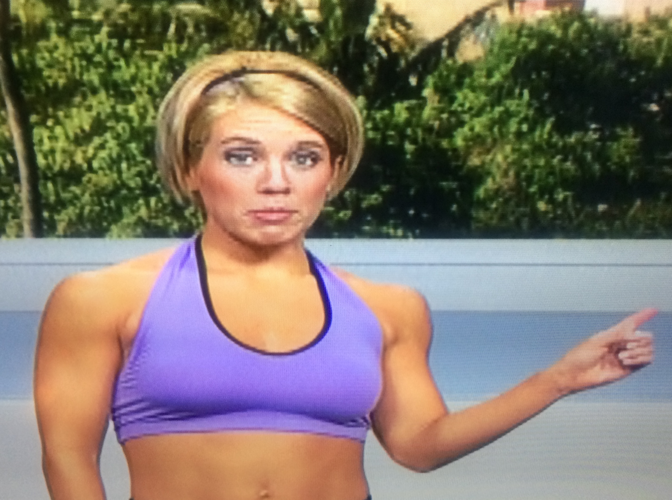 Coming in like a wrecking ball, our host suggests we “get ready to burn fat and tone your body, and still have time for a healthy lunch.” How much time does she think people have to eat lunch? I’m so used to gulping down my food, military-style, in a California State Labor Board-approved 30 minute window, that when I have a leisurely meal with friends I find it impossible to eat slowly. Such is the shame of the non-exempt employee.
