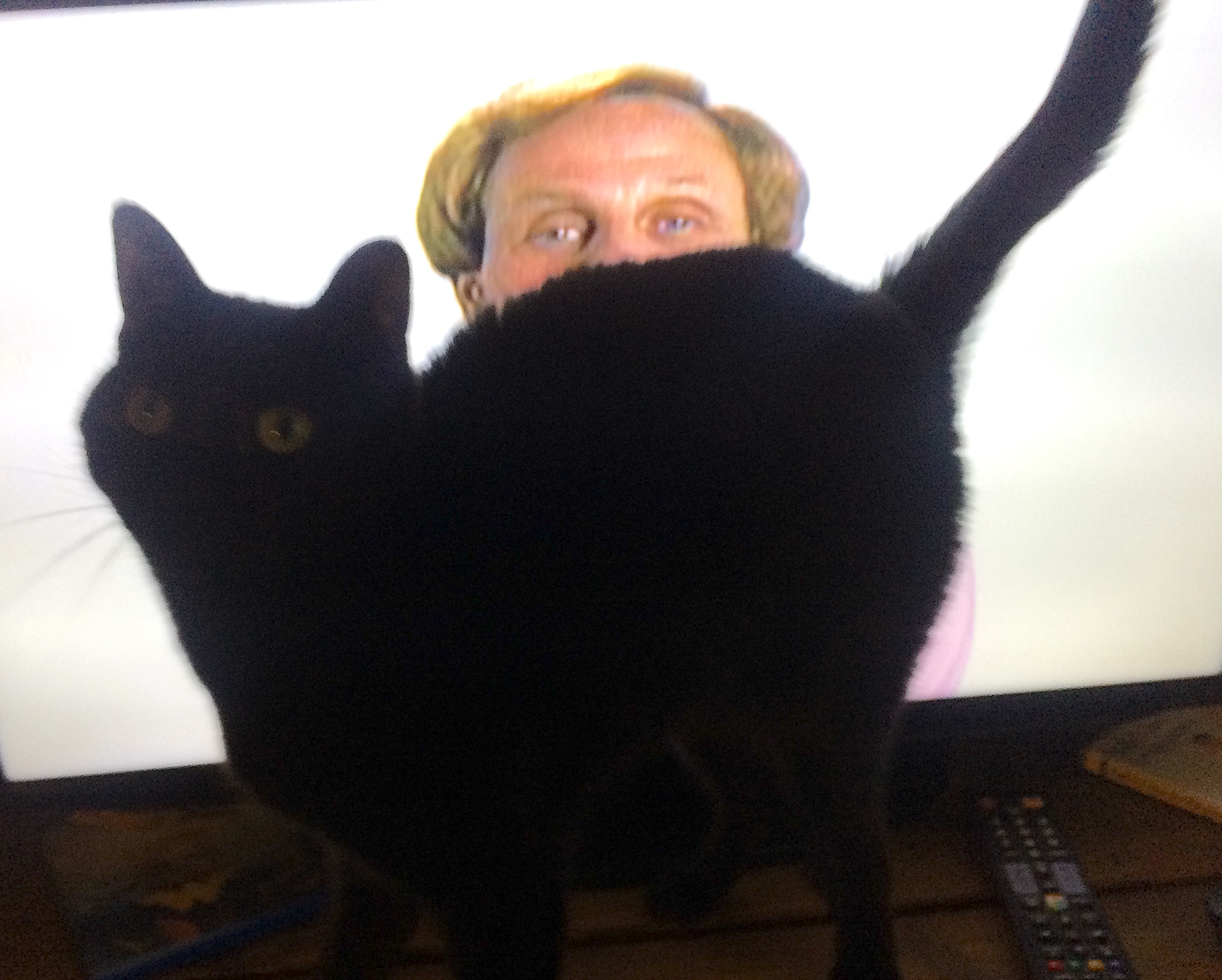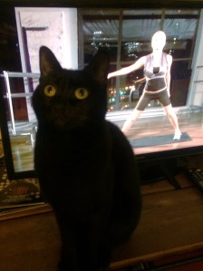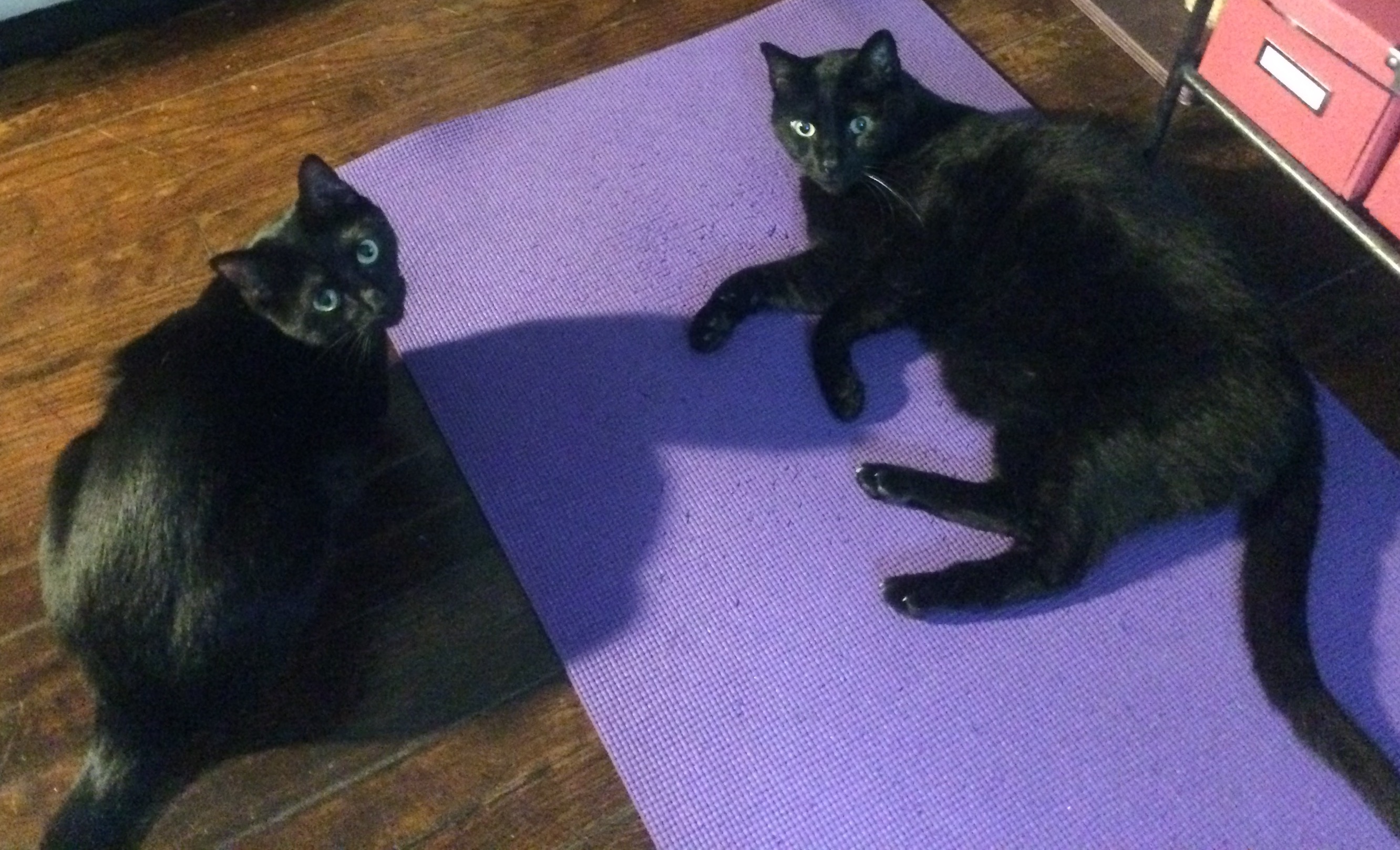 For now, let’s focus on a basic fact of exercising at home: pets underfoot! Consider also  another truism of pandemic lockdown – that looking at pictures of cats on the internet is the only thing keeping many of us sane. So, Loyal Readers, please enjoy some photos of my cats interfering, I mean, assisting, with my home workouts through the years.