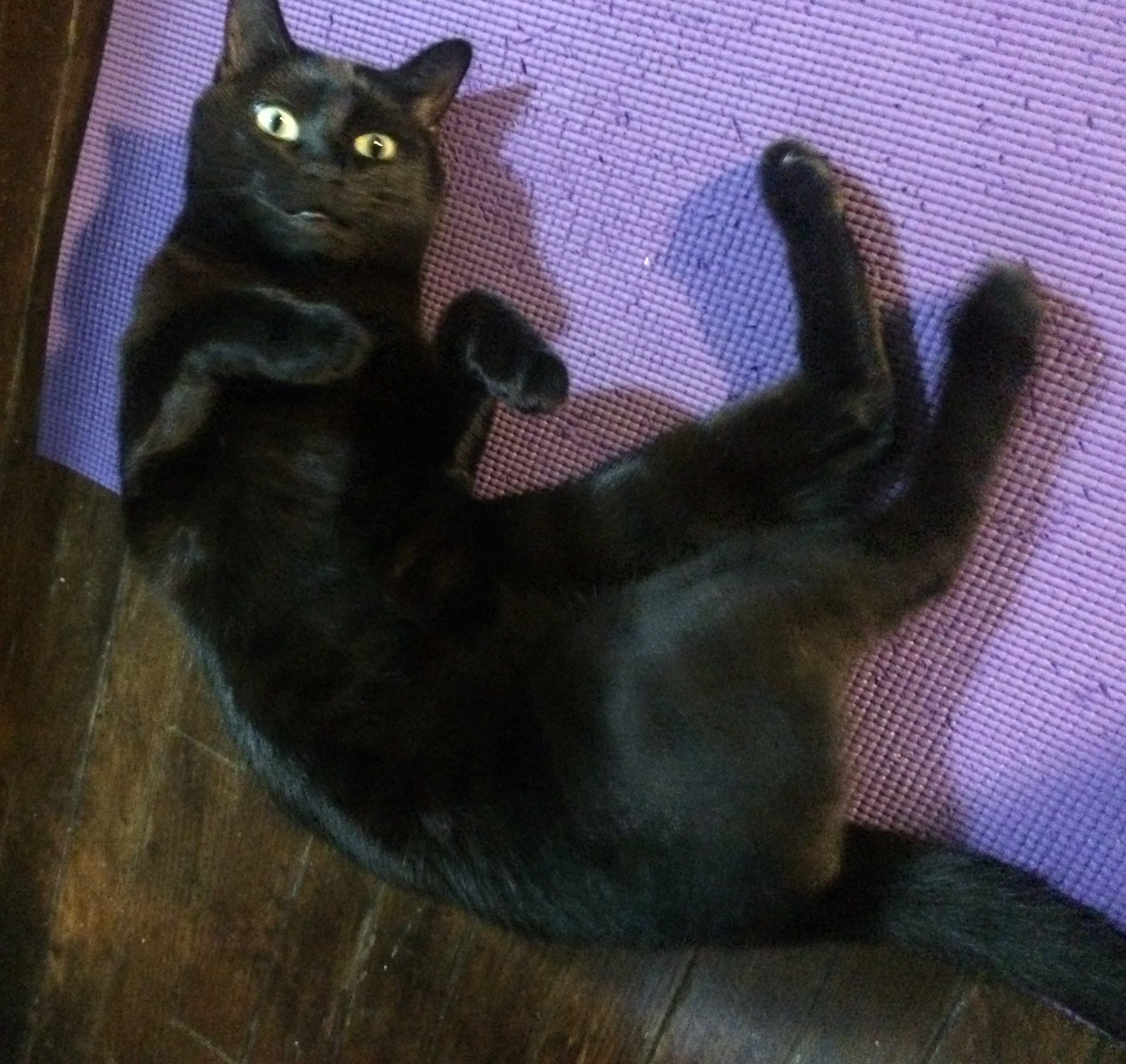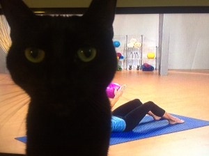 Not to be outdone in cuteness, the House Panther also liked to flop on the yoga blanket during Crunch Pilates Yoga Blend.