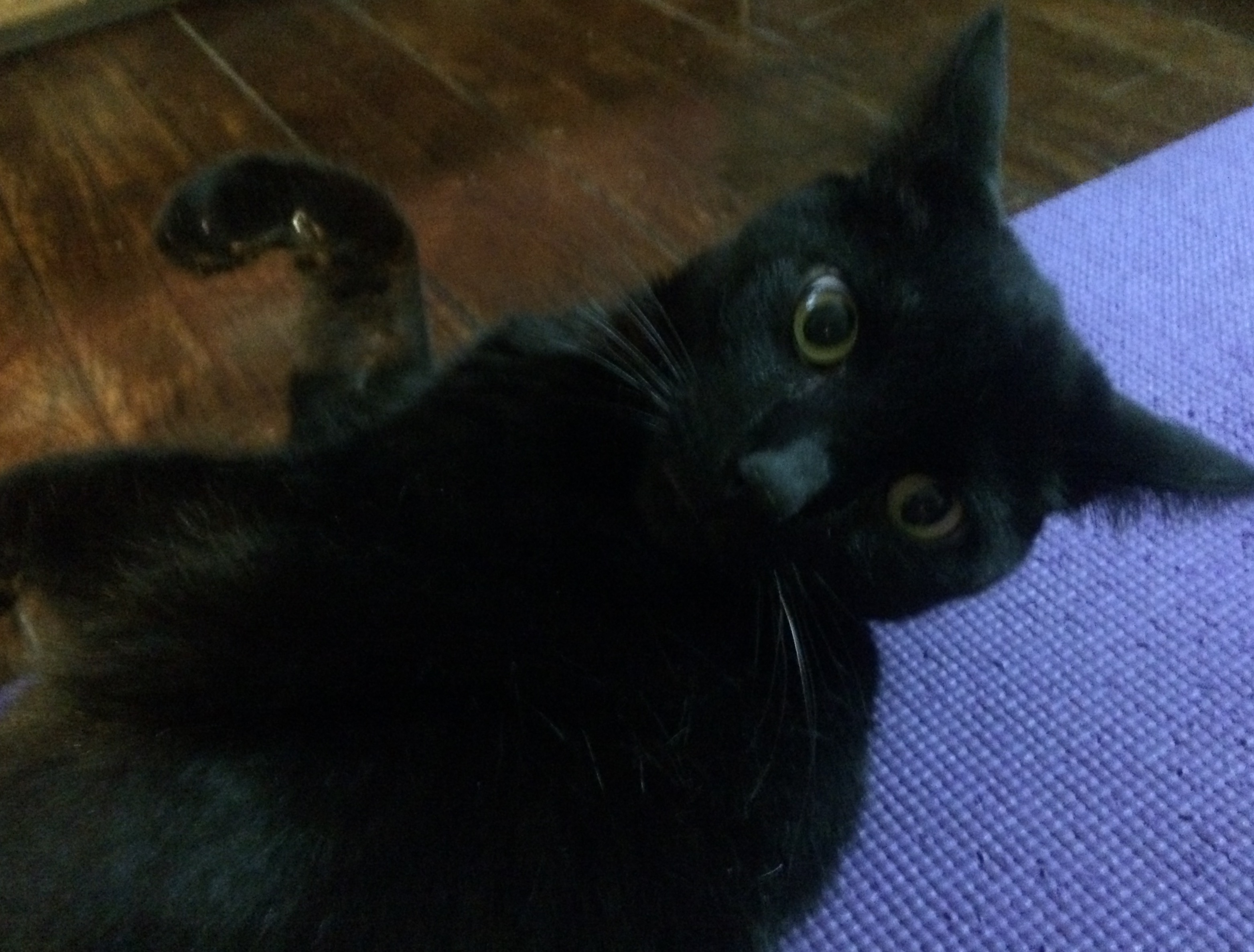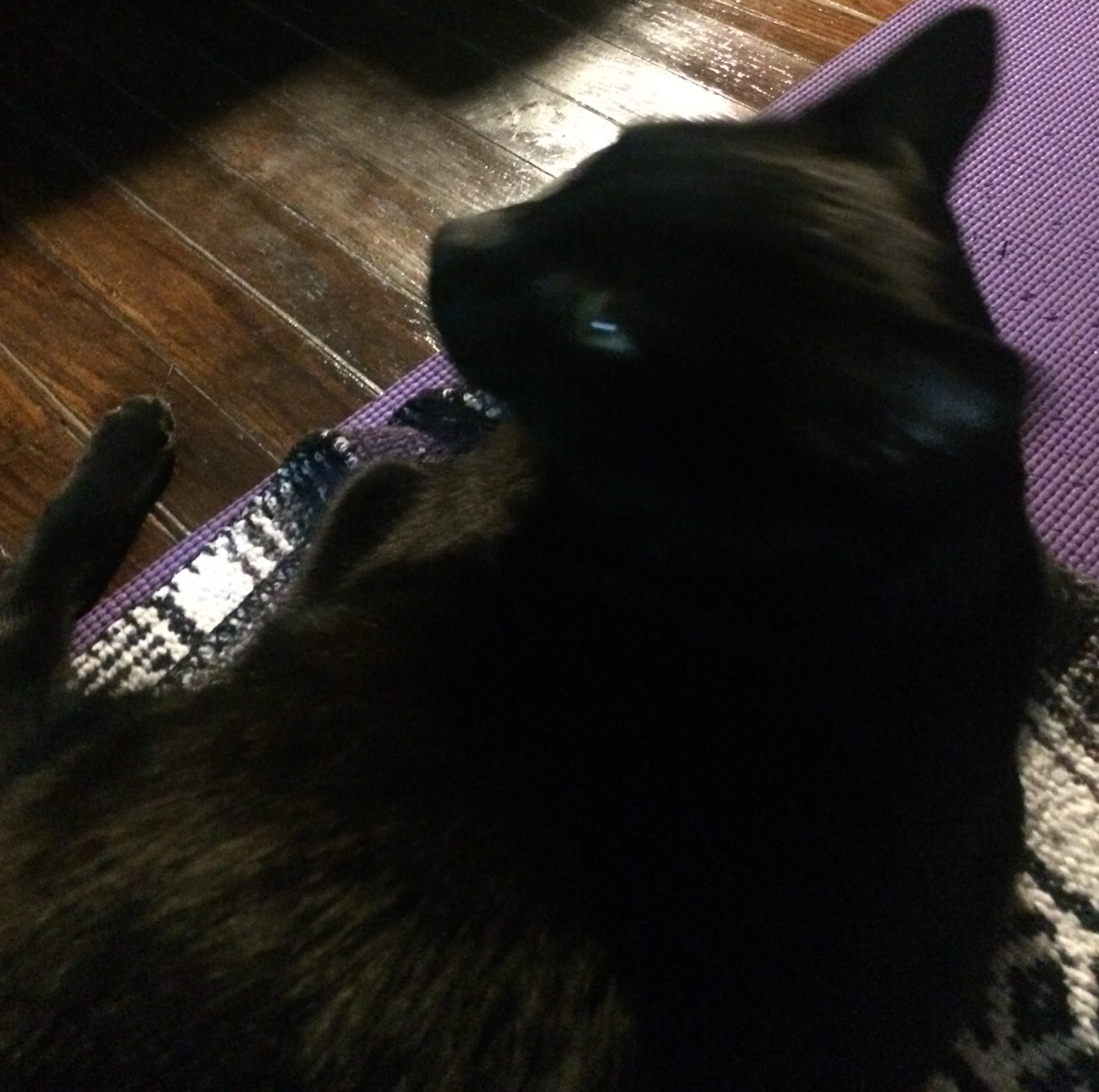 During Yoga For Stress Relief, the new kitten displayed a distinct fondness for my yoga blanket. I had only had her about a week at this point.