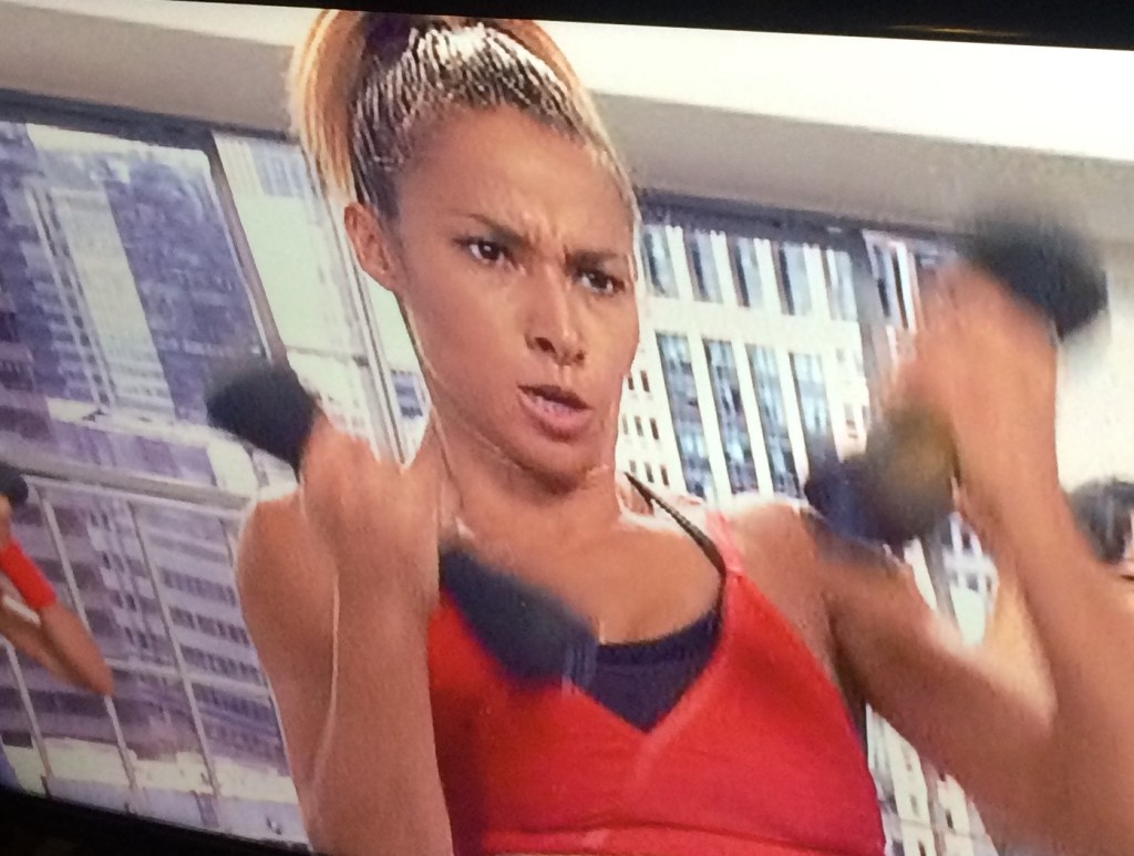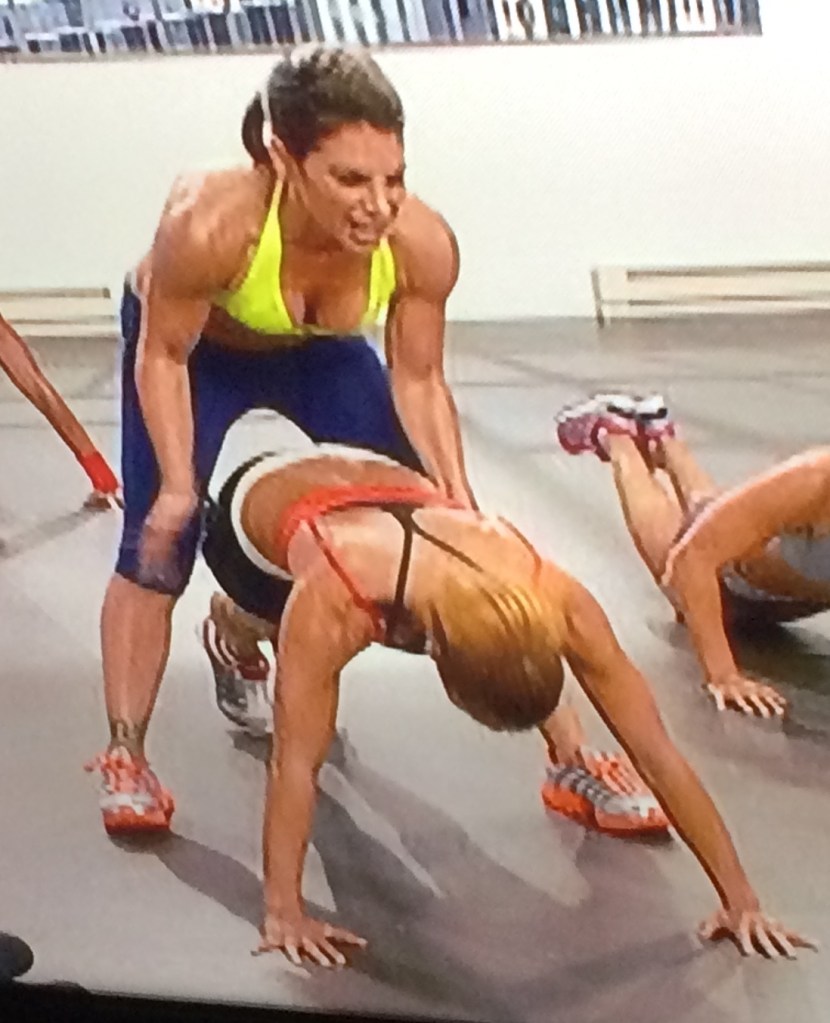 “Drive that knee into your partner’s head!” demands Jillian Michaels. I don’t think she’s kidding: