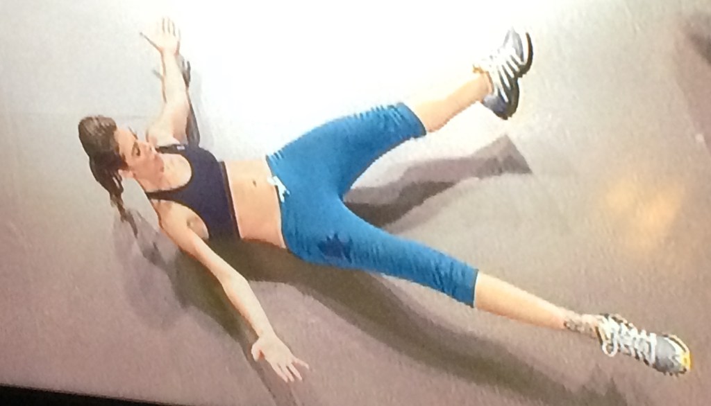 After a few more standing exercises, as Jillian would say, “it’s not over” and we get down on the floor to sprawl…