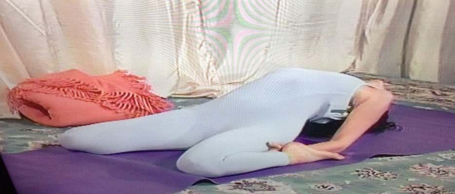 It may not surprise you that the sequence of poses in this workout are very similar to the first two. It’s heavy on the forward bends, and while I can’t feel the benefits to my pancreas that she insists are quite real, it is a good stretch for your hamstrings.  And so we close the curtain on the blanket fort, until next time.