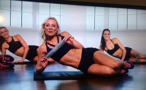 In this cardio segment, one of the dancers can’t stop laughing because her band has narrowed into a knife’s edge that threatens to bisect her legs, and she cannot believe how badly this hurts.