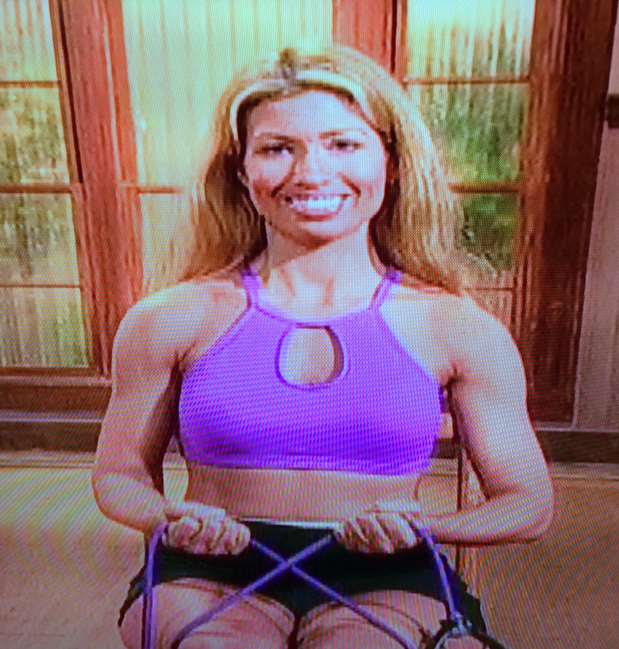 …a kicky hairdo that just won’t quit, and this bungee thing with a ball on one end, that keeps your stretchy band from slipping out of your door frame.
