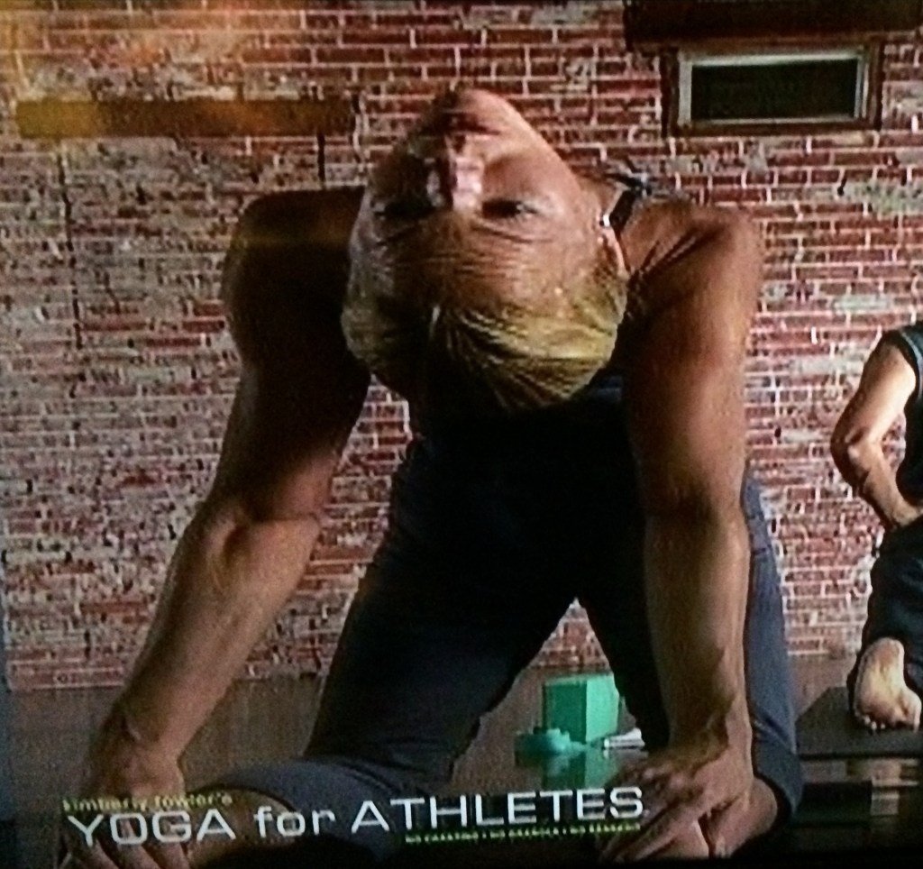 “No chanting. No granola. No Sanskrit,” declares the front cover, as if to emphasize the message that yoga is, in fact, for athletes. I find that last statement rather xenophobic.  Yoga originates from India, after all. Is it that surprising that the poses would have Sanskrit names?  And why would that be off-putting to athletes?