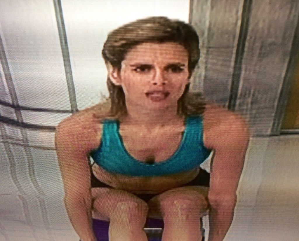 Here she gives it everything she’s got, even though she’s not using any hand weights: