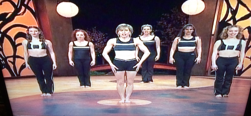 The music is a lot softer during this routine. The musicians play timidly because this instructor is all business and no one drowns out the sound of her voice! “There will be no singing on bridges, and only a very light tapping of bongos!” I’m sure she hissed right before cameras rolled.