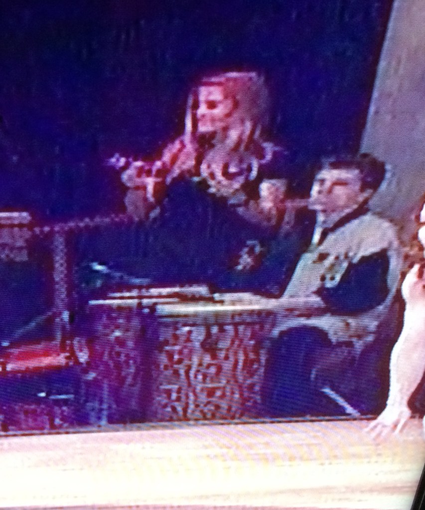 The camera cuts to another angle, and there’s two more musicians Stage Right.